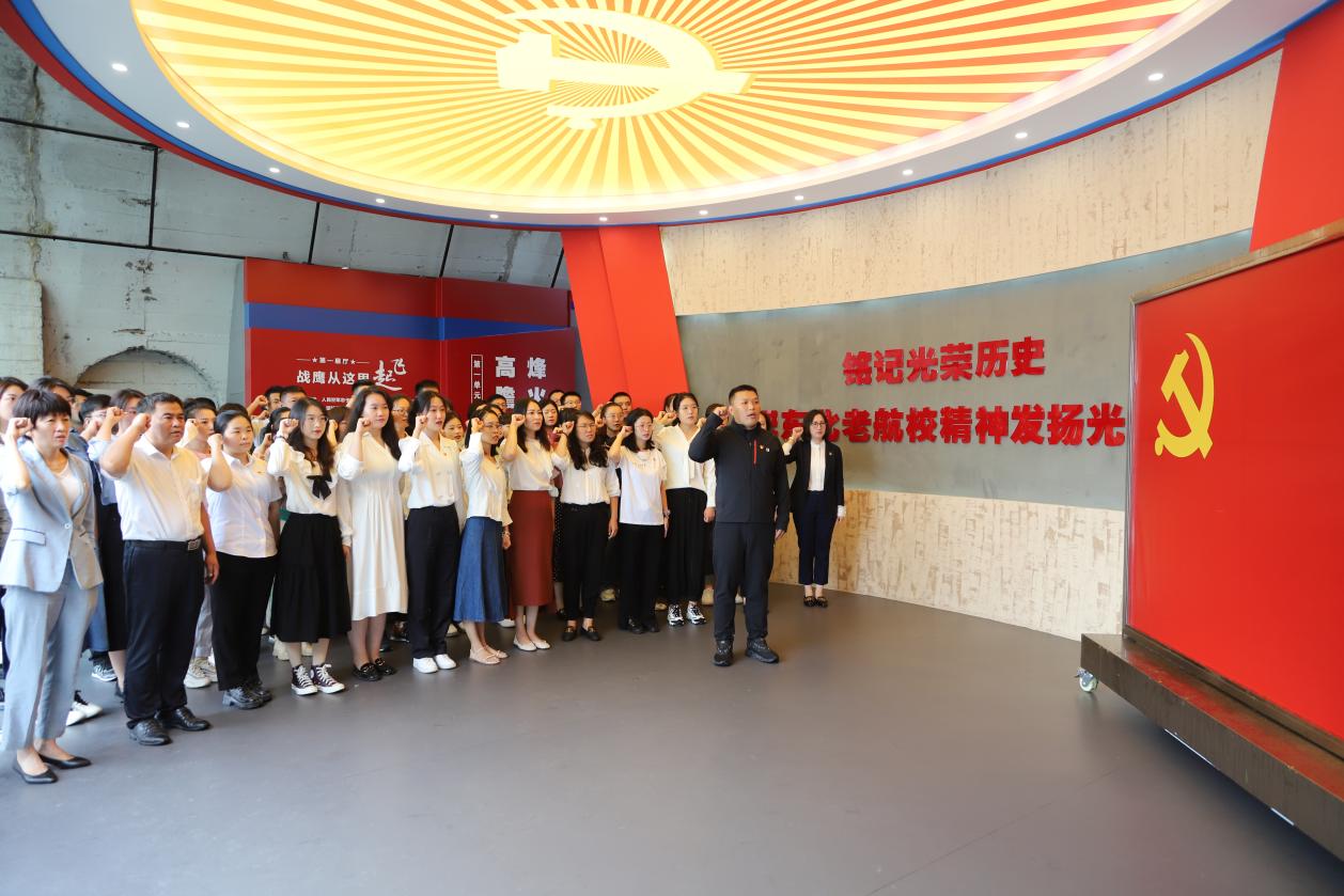 参观结束后,全体人员在2013年黑龙江省高校辅导员年度人物、物理与电子工程学院党委副书记朱柏学的带领下重温入党誓词。