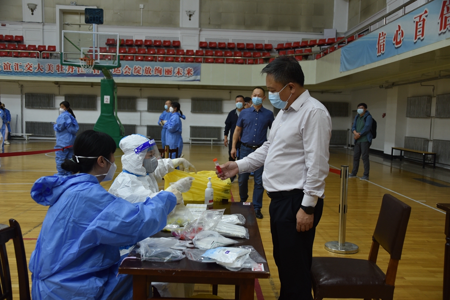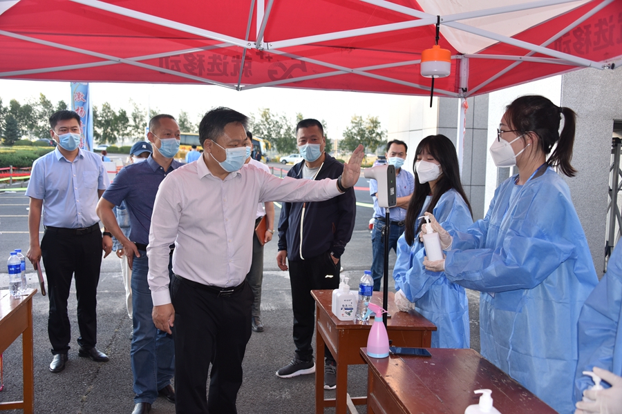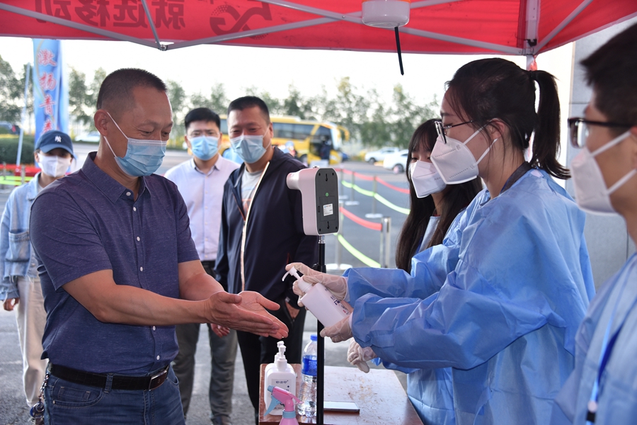 王志浩书记、李春江院长一行先后深入学校北门、体育馆核酸检测点、南门及快递点,亲身体验了扫码、测温、手消、核酸检测等流程,并进行工作指导。校领导一行详细了解疫情防控和学生返校情况,慰问坚守在一线的领导、教师和志愿者,叮嘱大家做好个人防护,落细落实疫情防控措施和返校报到相关要求,以严格的防疫措施和贴心的服务迎接学生返校。