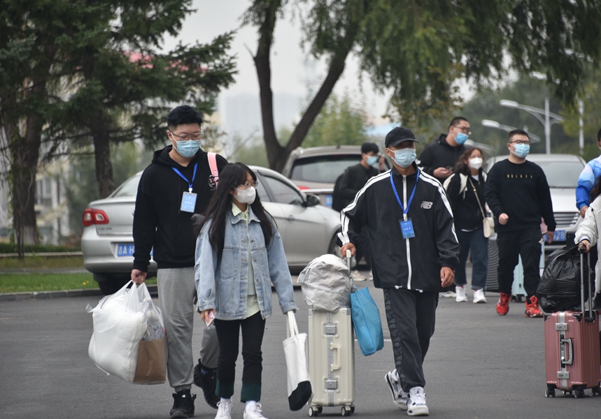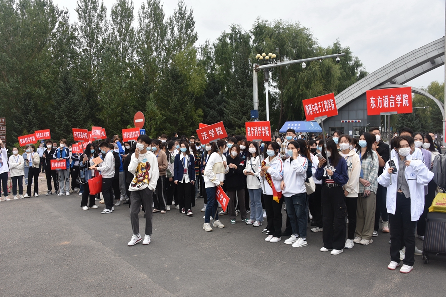 为了解决新生行李搬运问题,学校开启点对点运送、“一站式”服务。学校在牡丹江火车站、机场设置接待处,安排专人专车接送学生,确保新生安全到校,并协调大润发超市借用了多辆购物车,帮助新生运送行李,消除了家长无法同新生一同入校运送行李的担忧。