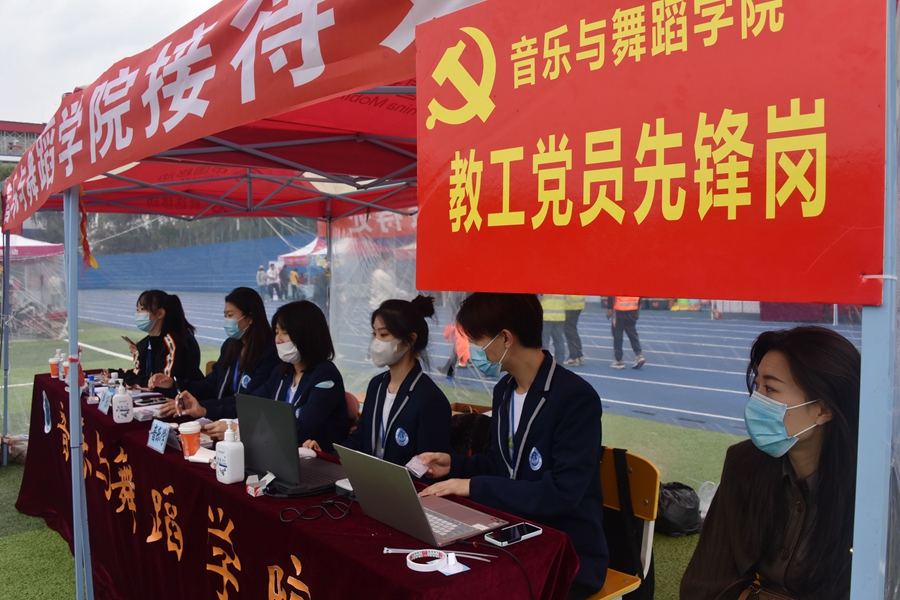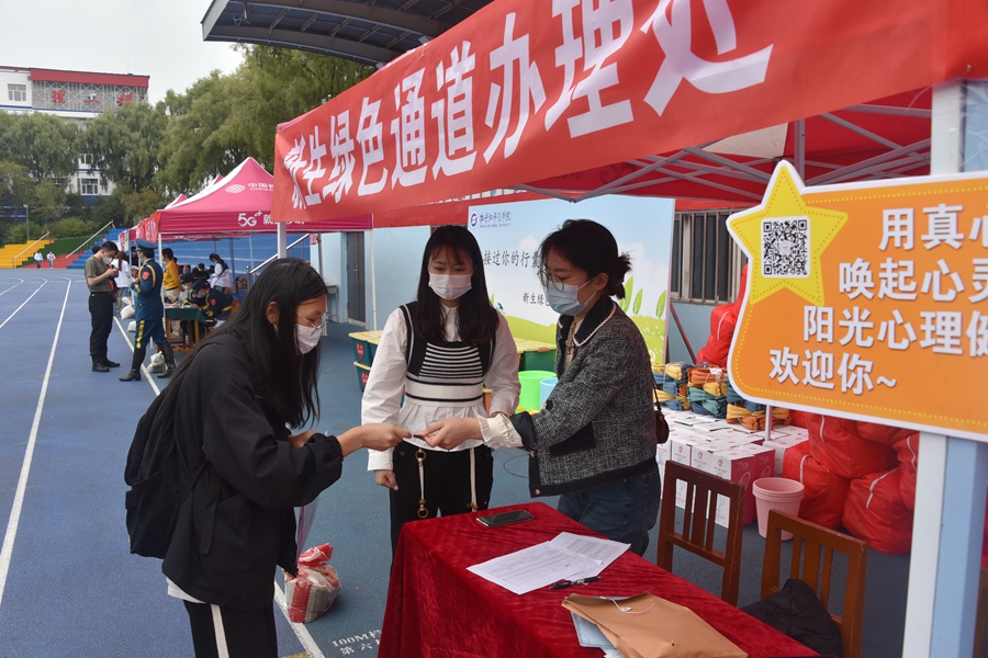 清晨5时30分,校内各接待处迎新生志愿者搭好帐篷,挂起横幅,清点物资,各项准备就绪,迎新工作全面开展。虽然连绵的秋雨为迎新工作增加了不少难度,但是各二级学院迎新接待处、学生公寓区、体育馆核酸检测场地的工作人员热情丝毫未减,努力为新生提供高效、便捷、热情、周到、温暖的服务。党政办公室负责迎新工作的总体协调,安排、调度接站车辆,落实和搭建迎新帐篷,联系相关医院来校为学生采集核酸样本。宣传部安排广播站全天播放校园概况、新生入学须知、疫情防控、反电信诈骗宣传语等信息,帮助新生及时了解最新动态,制作彩虹门、宣传条幅等,营造了热烈的迎新氛围。学生处在迎新现场设立了新生绿色通道接待处和大学生征兵咨询处,现场办理新生绿色通道及生源地助学贷款手续,解答新生征兵问题,为新生提供了方便。校团委选派优秀学生志愿者负责火车站、机场新生引导及入校专用通道信息查验工作,为新生提供暖心的服务。保卫处对校内道路车辆通行提前做了统一安排,在各个路口安排专人指引,确保车辆有序、安全通行。后勤管理处提前布置新生入校专用通道及核酸检测现场,为工作人员和志愿者提供美味的早中晚餐,为迎新工作顺利开展提供了坚实的服务保障。公寓管理中心将寝室钥匙、被褥等用品分配给新生,让新生第一时间入住了整洁舒适的寝室。各二级学院党委书记、辅导员及志愿者们一直坚守在迎新第一线,从车站接待、测温核查,到行李搬运、报到指引,让新生感受到了家人般的温暖。