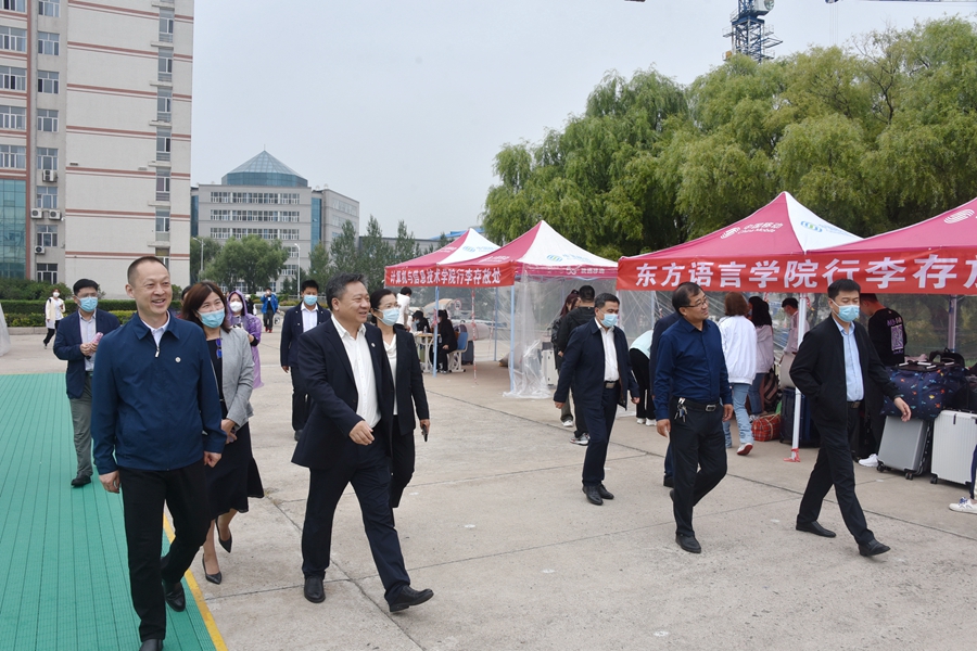 新生报到期间,学校领导王志浩、李春江、刘松、程爽、张艳霞、张冰、张晓祥及相关职能部门负责人顶着风雨,深入迎新现场看望慰问新生家长、指导迎新工作,向不辞辛苦、奋战一线的工作人员和师生志愿者表示感谢。每到一处,校领导和新同学们亲切交谈,仔细了解报到注册情况,叮嘱大家做好个人防护,勉励他们珍惜韶华、砥砺奋进,尽快适应、合理规划大学生活。