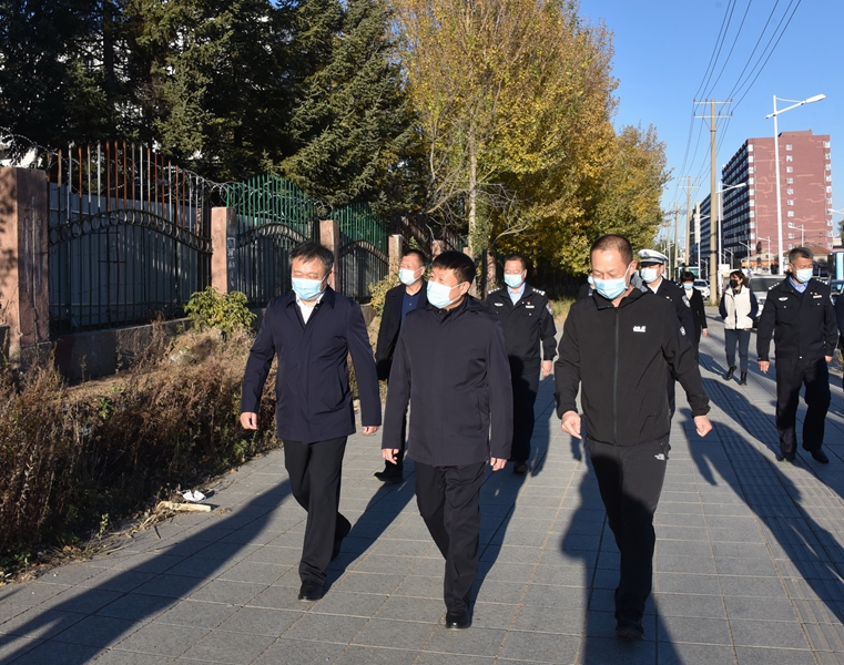 10月16日下午,牡丹江市副市长、公安局局长高忠远在爱民区区长王晓宇,爱民区副区长、公安局局长吕昌湛等市、区领导的陪同下,来我校调研指导校园安全稳定工作。我校党委书记王志浩,院长、党委副书记李春江,党委副书记刘松,副院长、党委常委张晓祥及相关职能部门负责人陪同调研。
