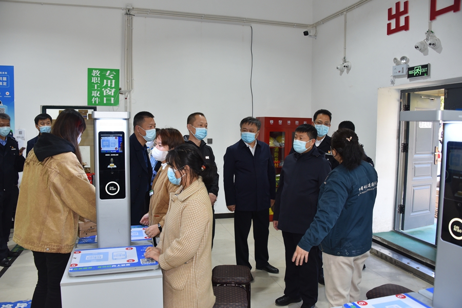 高忠远副市长全环节体验入校扫码、测温、戴口罩等流程,先后深入校园邮政快递服务中心、视频监控室,详细了解快递送达、消毒、投递等环节疫情防控措施落实和人防、物防、技防建设情况,实地检查校园周边院墙围栏建设、视频监控点位设置、巡控警力布置等工作,对我校从严从细落实疫情防控措施予以充分肯定。