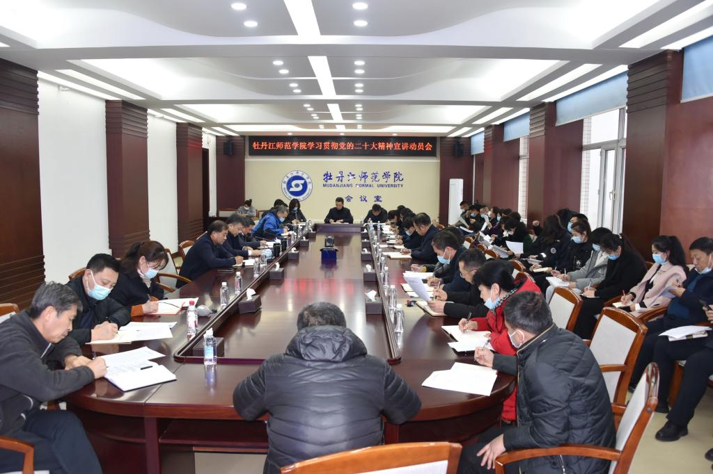 为深入学习宣传贯彻党的二十大精神,11月12日下午,学校在综合楼1206会议室召开学习贯彻党的二十大精神宣讲动员会。校党委书记王志浩、党委副书记刘松,各职能部门及二级学院负责人,专家学者代表,思政课教师代表,辅导员、学生代表等学校学习贯彻党的二十大精神宣讲团成员参加动员会。会议由党委副书记刘松主持。