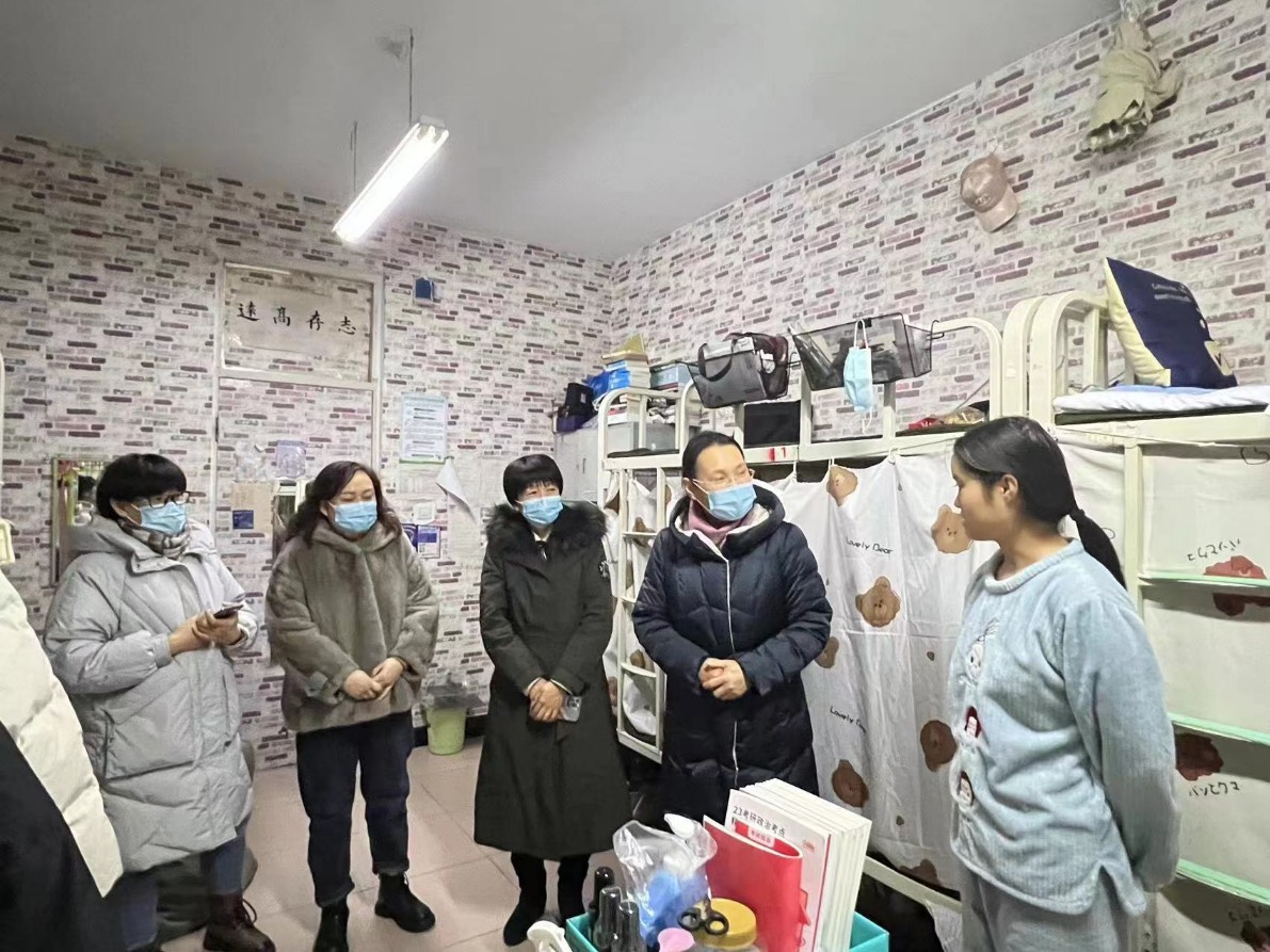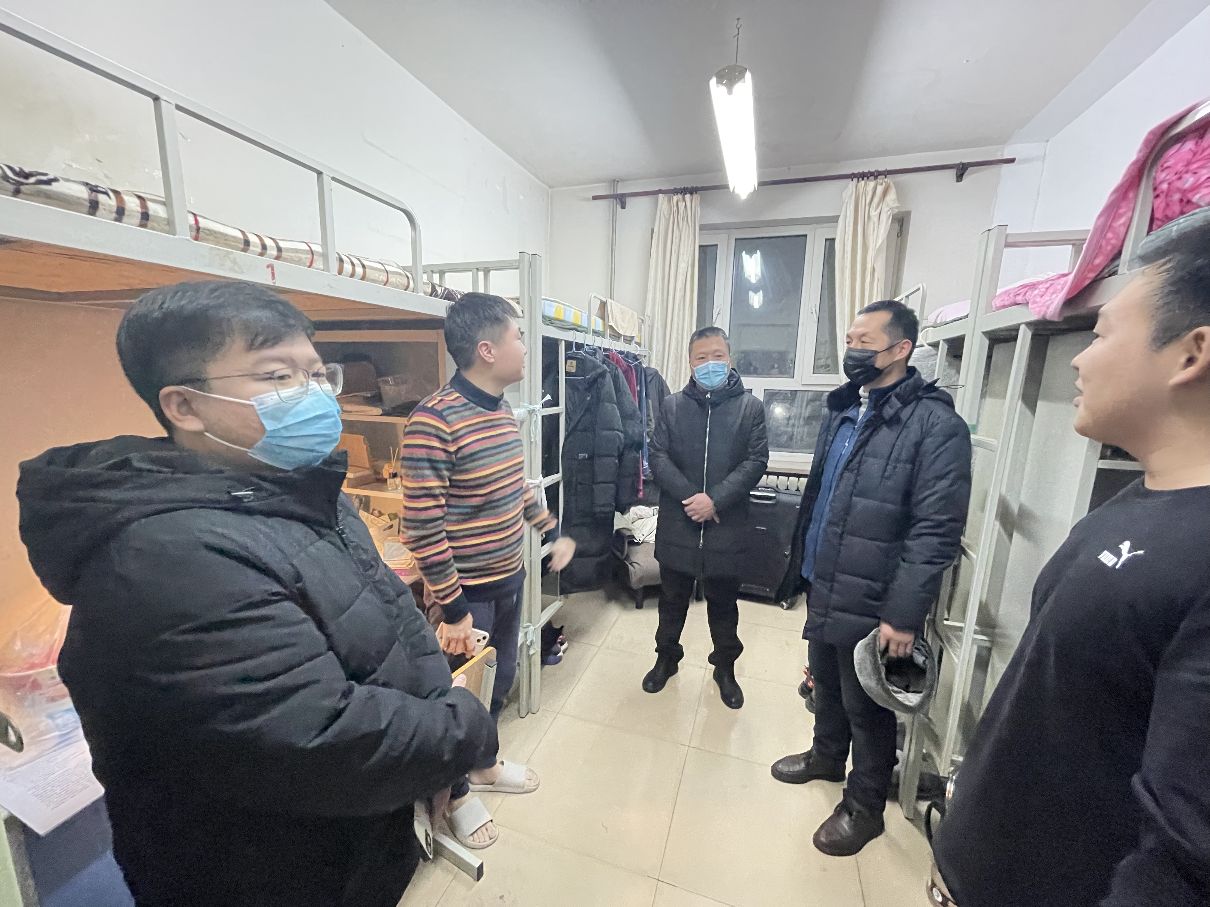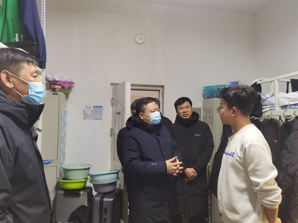 为认真落实落细学校疫情防控要求,筑牢学校疫情防控安全防线,深入了解学生的思想动态和所需所急,12月1日晚,学校领导王志浩、李春江、程爽、张艳霞、张燕梁、张冰、张晓祥分组深入学生宿舍走访慰问,围绕学生关心关切的实际问题进行沟通交流。
