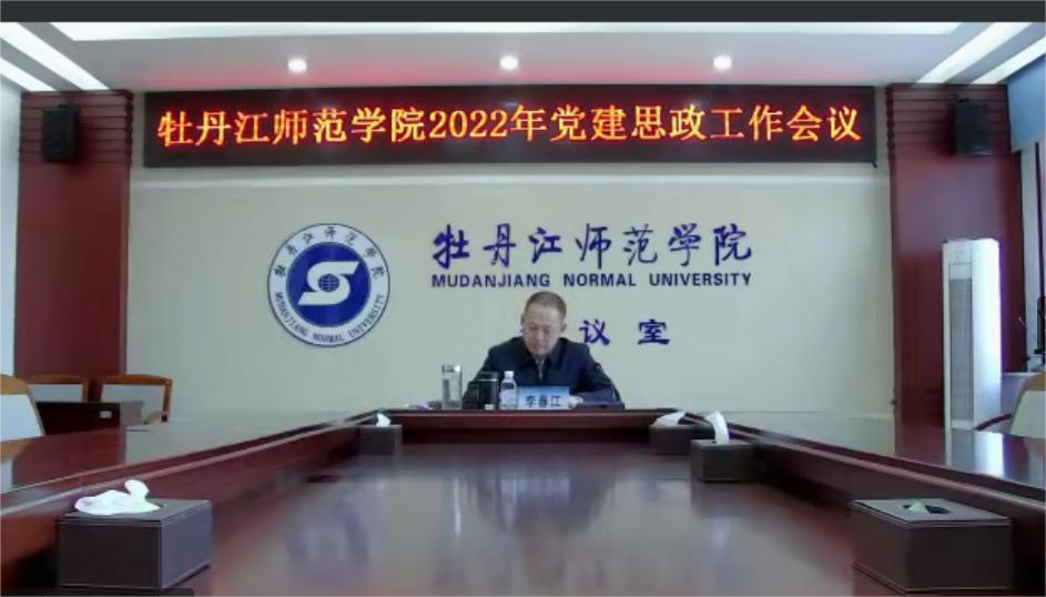 受党委书记王志浩委托,院长、党委副书记李春江在会上讲话,李春江校长总结了一年来我校党建和思想政治工作取得的成绩和存在的不足,并且对当前和下一阶段做好全校党建和思想政治工作提出五方面意见。一要聚焦守正创新,强化主体主责,以党建工作新成效引领学校高质量发展;要创新载体,持续深入开展政治理论学习;发挥作用,增强基层党建政治功能;强化监督,将全面从严治党落实落细。二要聚焦政治站位,落实政治担当,持续推进学校党建工作走深走实。要压实党建工作主体责任,建立健全党建工作体系,提升党建引领发展效能,搭建人才培养平台。三要聚焦育人根本任务,构建“大思政”工作格局,扎实推进学校思想政治教育工作。要建立健全思想政治工作责任制,开展红色思政教育,推进思政课程创新创优建设和师德师风建设。四要聚焦问题短板,提高管控能力,认真梳理党建、思想工作存在的薄弱环节。比如,党建工作与发展中心工作结合不紧密,深度融合不够。党的基层组织规范化建设、管控能力需要提升,网络思政教育内容还不够丰富。五要明确目标任务,强化政治引领,深刻领会和把握党对教育事业的全面领导。要维护核心抓、围绕中心抓、突出重点抓党建和思政工作,要在抓实基础建设上进一步发力。