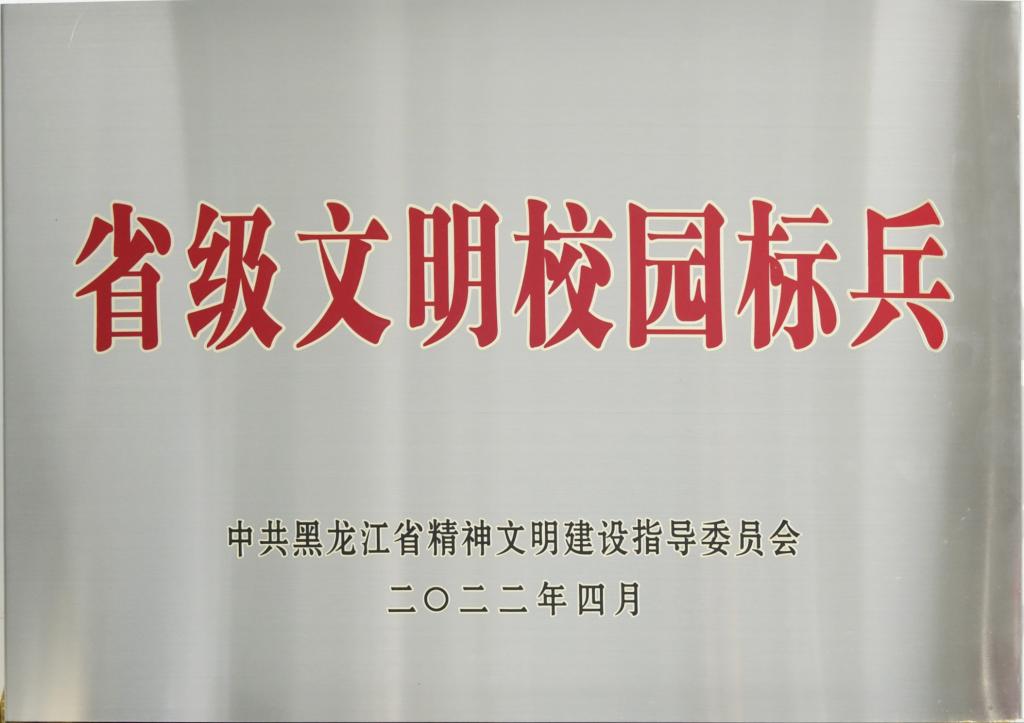 2022年,我校荣获“省级文明校园标兵”荣誉称号。近日,学校收到了由中共黑龙江省精神文明建设指导委员会颁发的“省级文明校园标兵”荣誉称号奖牌。