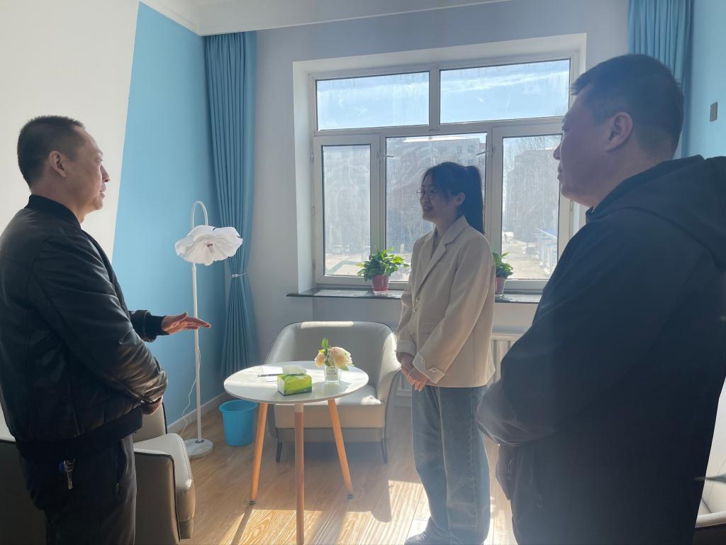 3月18日,院长、党委副书记李春江,副院长、党委常委张晓祥在相关职能部门负责人的陪同下,深入心理健康教育中心、健康驿站、学生“一站式”社区服务中心和招聘会现场调研指导工作。