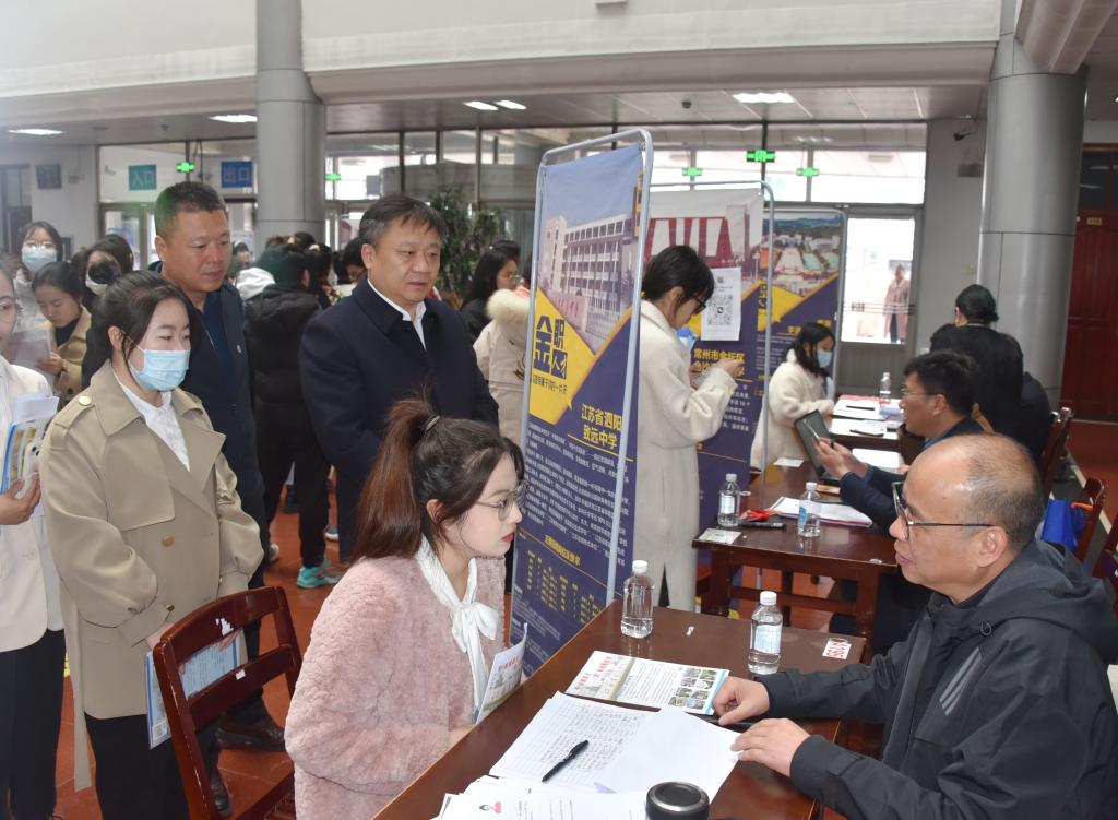 据悉,本次招聘会提供了长三角地区18所民办中学,带小、初、高等600余个岗位,吸引了我校千余名毕业生参加招聘会。招聘会现场有序而热烈。在用人单位展位前,学生自动排起长队,等待投递简历或深入咨询。