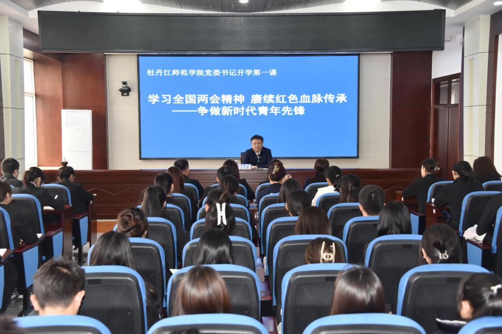 3月22日下午,校党委书记王志浩教授以《学习全国两会精神 赓续红色血脉传承 争做新时代青年先锋》为题讲授“开学第一课”,与青马工程培训班学员、在校生学生代表面对面,学习两会精神,解读国家政策,明晰时政动态,聊成长、解困惑,共赴新学期,共展新希望。