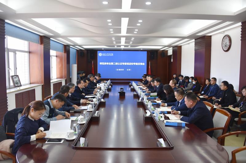 专家组全体成员、学校领导班子,生命科学与技术学院、化学化工学院院长、党委书记及相关职能部门负责人在主会场参加会议。两个学院全体无课专任教师,设有师范专业的学院班子成员、专业负责人、骨干教师及其他职能部门负责人在线上参加会议。会议由教育部师范认证联合专家组组长兼生物科学专业专家组组长河南省教育评估中心副主任张新民教授主持。