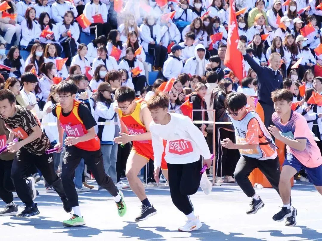 本届接力赛共有参赛学院17个,全程共22棒12800米。跑道上,运动员们敢拼敢闯,他们拼尽全力发挥竞赛水平,赛出牡师青年的豪情与热血。观众们热情高涨、激情呐喊,加油声此起彼伏。接力赛期间,体育与健康科学学院的同学们带来“一起向未来”的啦啦操表演,他们带着灿烂的笑容,跳着活力四射的舞蹈,伴着激昂奋进的音乐,一同为运动员们加油助威。