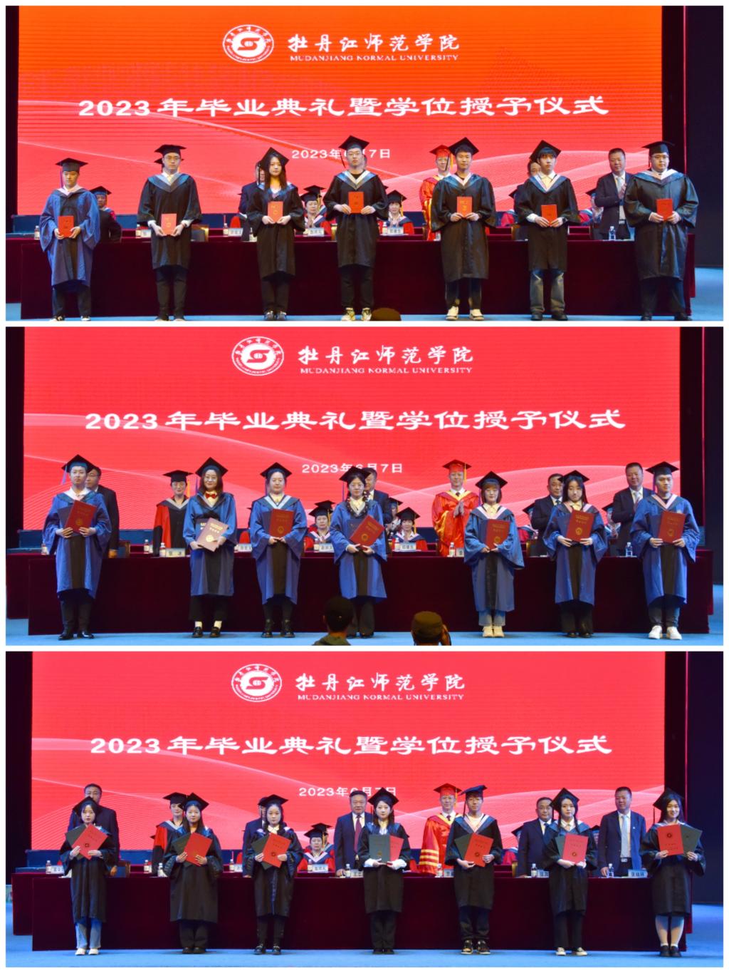 伴随着激昂的乐曲,党委书记王志浩为优秀校友代表,全国优秀教师、龙江学者青年学者、黑龙江省教学名师、博士、八一农垦大学人文社会科学学院院长田恩铭教授颁发优秀校友证书。与会校领导为2023届毕业生代表颁发毕业证书、学士学位证书,为2023届毕业生先优代表颁发荣誉证书。