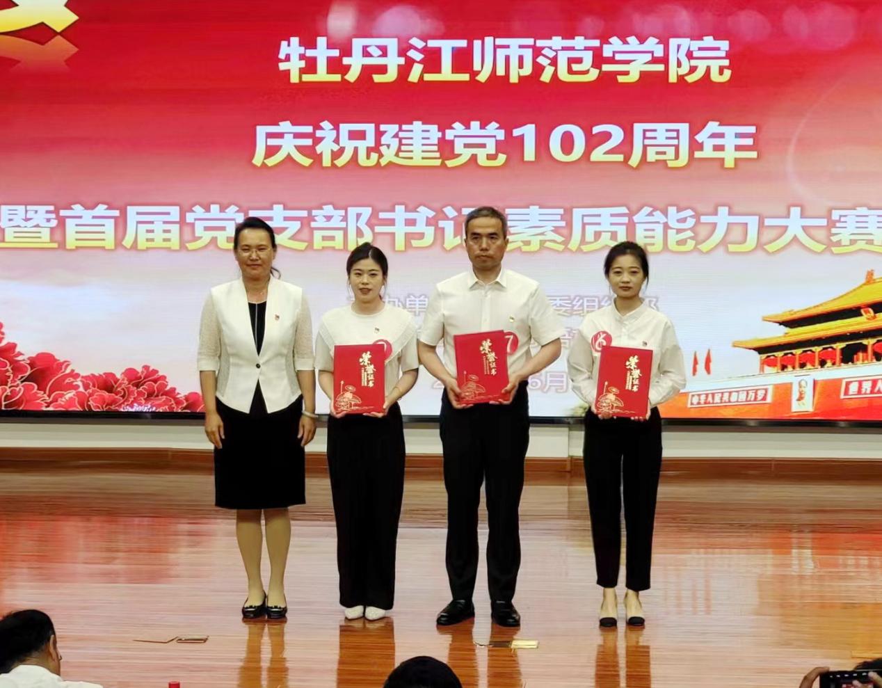 二等奖:音乐与舞蹈学院学生第一党支部书记孙云玥、保卫处后勤保卫总支部第二党支部书记伍勇兵、西方语言学院学生党支部书记陈畅