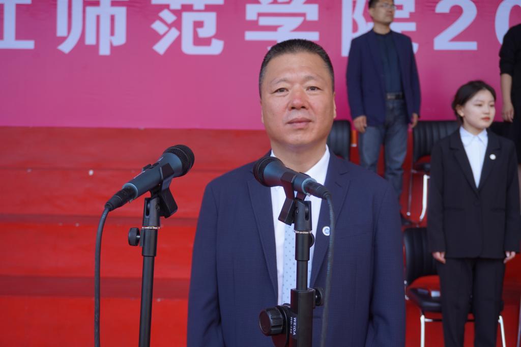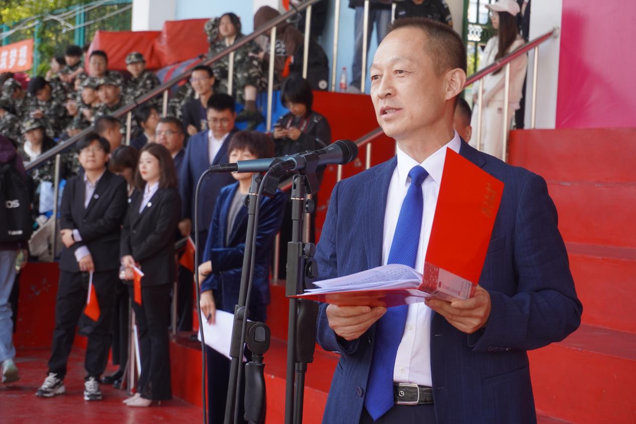 院长、党委副书记李春江在大会上致辞,为新生讲授“开学第一课”。他代表学校师生员工,向2023级新同学的到来表示欢迎,向辛勤培育同学们成长的父母、师长表示敬意,向承训教官表示感谢,向受到军训表彰的先进集体和先进个人表示祝贺。院长、党委副书记李春江对全体新生提出三点希望:一是坚持自己的选择,在实现中国式现代化的新征程上勇敢织梦。将个人目标的选择与国家发展、人民幸福结合在一起,让青春在全面建设社会主义现代化国家的火热实践中绽放绚丽之花。二是坚持自己的努力,在实现中国式现代化的新征程上实干追梦。切实做到总书记要求的年轻人要“自找苦吃”,不断积累、不断突破、不断涅槃,在脚踏实地的努力中成就一番无悔的青春。三是坚持自己的执着,在实现中国式现代化的新征程上登高圆梦。保持执着追求的精神,带着美好憧憬和希望向前迈进。