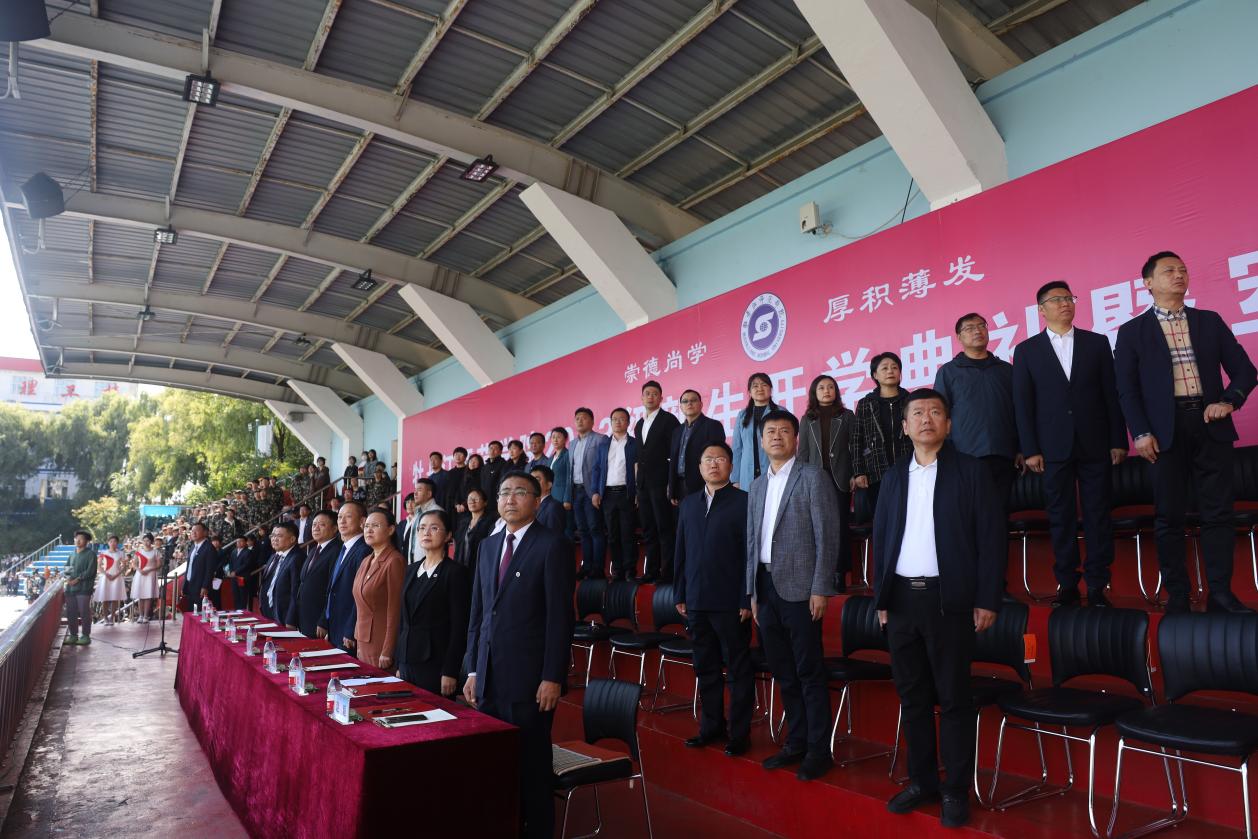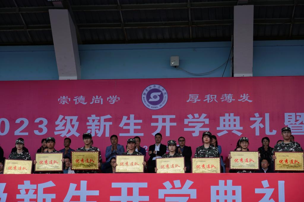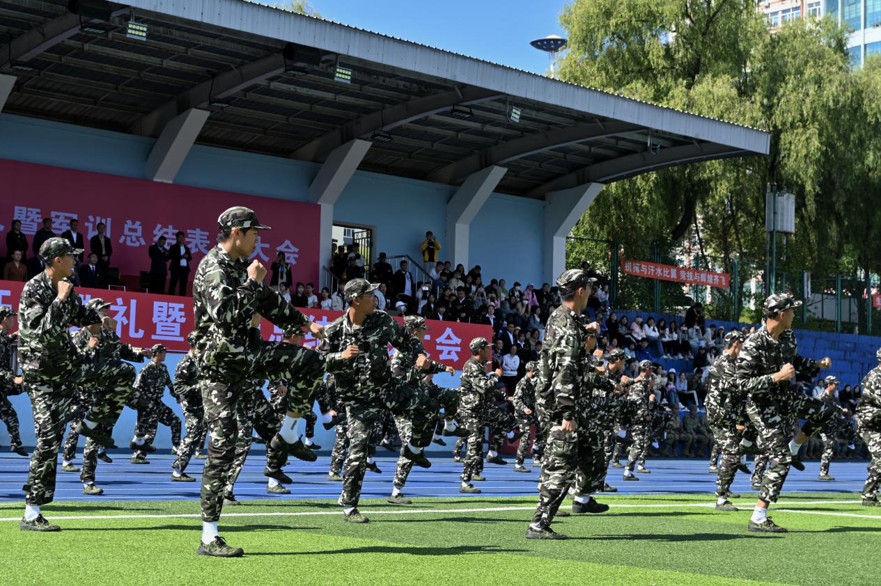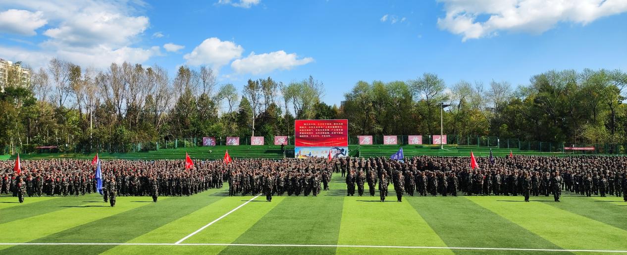 “国要强我们就要担当,战旗上写满铁血荣光!”5000余名师生齐唱《强军战歌》,唱响时代强音,唱出万丈豪情,表达了对党和国家的深切热爱和美好祝福。在铿锵嘹亮的军歌声中,2023级新生开学典礼暨军训表彰大会圆满结束。