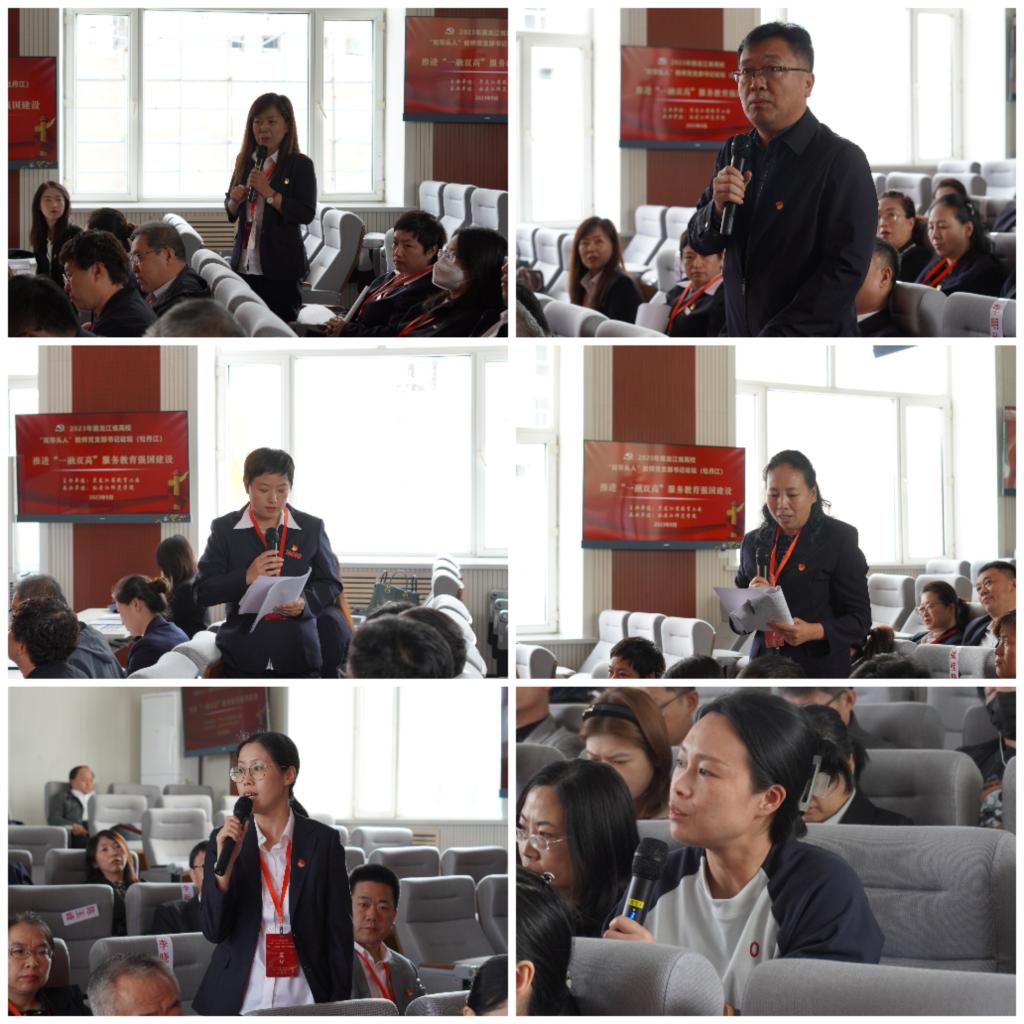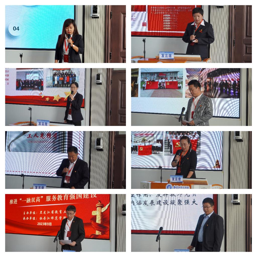 在主旨发言环节,牡丹江医学院护理学院教工党支部书记刘淑梅、黑龙江工业学院环艺与建筑工程学院教师党支部书记高翠娥、黑龙江林业职业技术学院家居工程系教师党支部书记姚川等8所高校优秀教师党支部书记,围绕“推进一融双高,服务教育强国建设”主题,立足学校“十四五”发展目标,结合落实立德树人根本任务,以党建品牌建设为依托,从强化教师党支部政治功能、落实意识形态责任、构建大思政育人格局等方面,聚焦提高教育教学质量、推动科研成果转化、助力学生成长成才、提升服务社会水平、创新党建与业务工作融合机制等内容,介绍了党支部的工作情况和实际成效,为高校党建服务教育强国建设提供了有益经验。