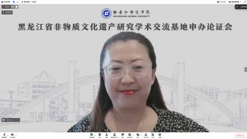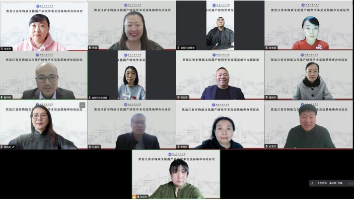 10月19日下午,我校黑龙江省非物质文化遗产研究学术交流基地申办论证会在线上举行。黑龙江省社会科学界联合会学会领导及论证专家,学会工作部副部长、二级调研员黄琦,学会工作部一级科员李涵婷,哈尔滨师范大学科技处副处长赵德鸿教授,黑龙江大学文学院教授刘冬颖;我校非遗研究工作协作单位代表、上海大学上海美术学院副院长章莉莉教授,牡丹江市融媒体中心广播综合频率主任姚凌涛及我校相关单位负责同志、教师代表参加会议。会议由我校文学院院长綦中明,副院长施新佳主持。