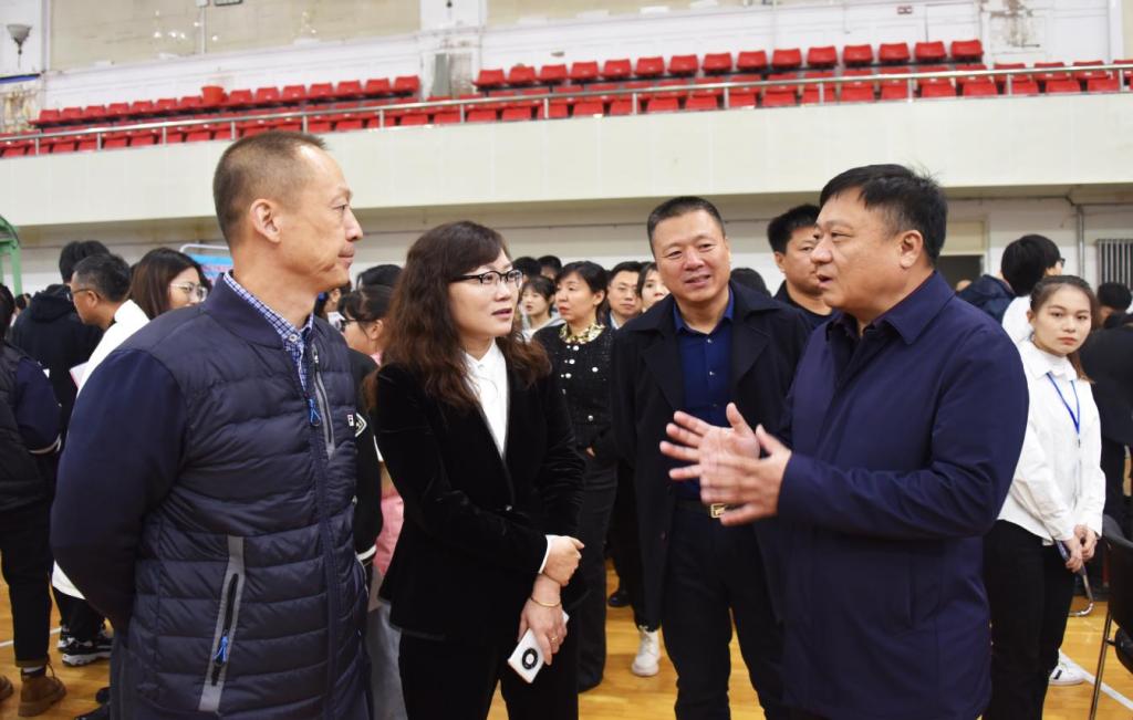 党委书记王志浩,院长、党委副书记李春江,副院长、党委常委张晓祥深入招聘会现场,走访用人单位,向选聘我校毕业生的用人单位表示感谢,并与用人单位深入交流,了解企业用人需求,表示希望未来有更深入、更持久的合作。校领导与现场求职的毕业生亲切交谈,详细了解毕业生求职意向、求职准备和签约情况,叮嘱同学们要把握机会,明确目标,尽早就业。部分低年级学生也来到招聘现场提前了解用人需求,体验双选氛围。