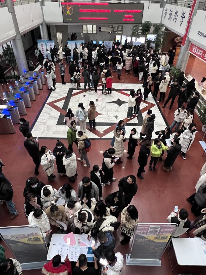 据悉,本次专场招聘会有9所长三角地区中学参会,为毕业生提供教师岗位一百余个,用人需求近500人,岗位涉及学科覆盖我校全部师范类专业,另有部分岗位不限专业。招聘会现场有序而热烈,在用人单位展位前,准备应聘的毕业生自动排起长队,等待投递简历、咨询交流及意向登记等,用人单位详细介绍招聘需求和条件,了解毕业生基本情况,部分用人单位通过简历筛选、谈话交流、面试试讲等形式筛选确定用人意向。