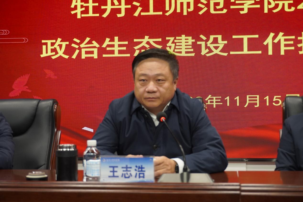 党委书记王志浩在会上讲话。王志浩书记深入分析了影响政治生态建设成效的关键因素和薄弱环节,剖析了产生问题的历史因素和思想根源。他要求,各基层党委、各部门要以高度的政治自觉和政治敏感,坚持刀刃向内,勇于自我革命,狠抓政治生态建设,做到党性和人民性相统一;要把政治生态建设摆在突出位置,聚焦工作任务持续发力,盯紧突出问题整改提升,推动政治生态建设与学校中心工作紧密结合、相互促进;要把工作“量、质、效”作为评价标准,结合能力作风建设“工作落实年”要求,压实落靠各方责任,以求真务实的作风和破解难题的担当,扎实推动各项整改任务落地见效。