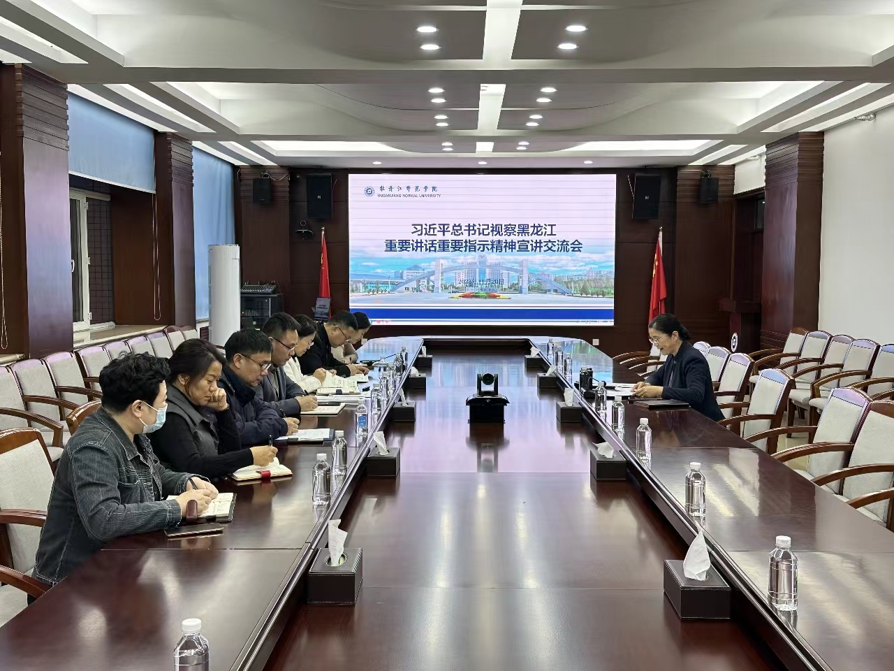 11月20日,副院长张冰在综合楼1206会议室为教务处、科研处、财务处、国际交流合作处、创新创业学院、教学质量评估中心、教育发展研究中心等职能部门宣讲习近平总书记视察黑龙江重要讲话重要指示精神。