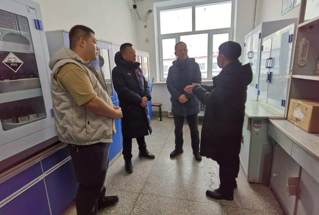 李春江院长一行先后深入理工楼实验室药品库、教师教育实训楼施工现场、换热站等地,重点检查了实验危化品管理、消防安全、施工安全、水电安全及供暖情况,听取了相关单位负责人的汇报。