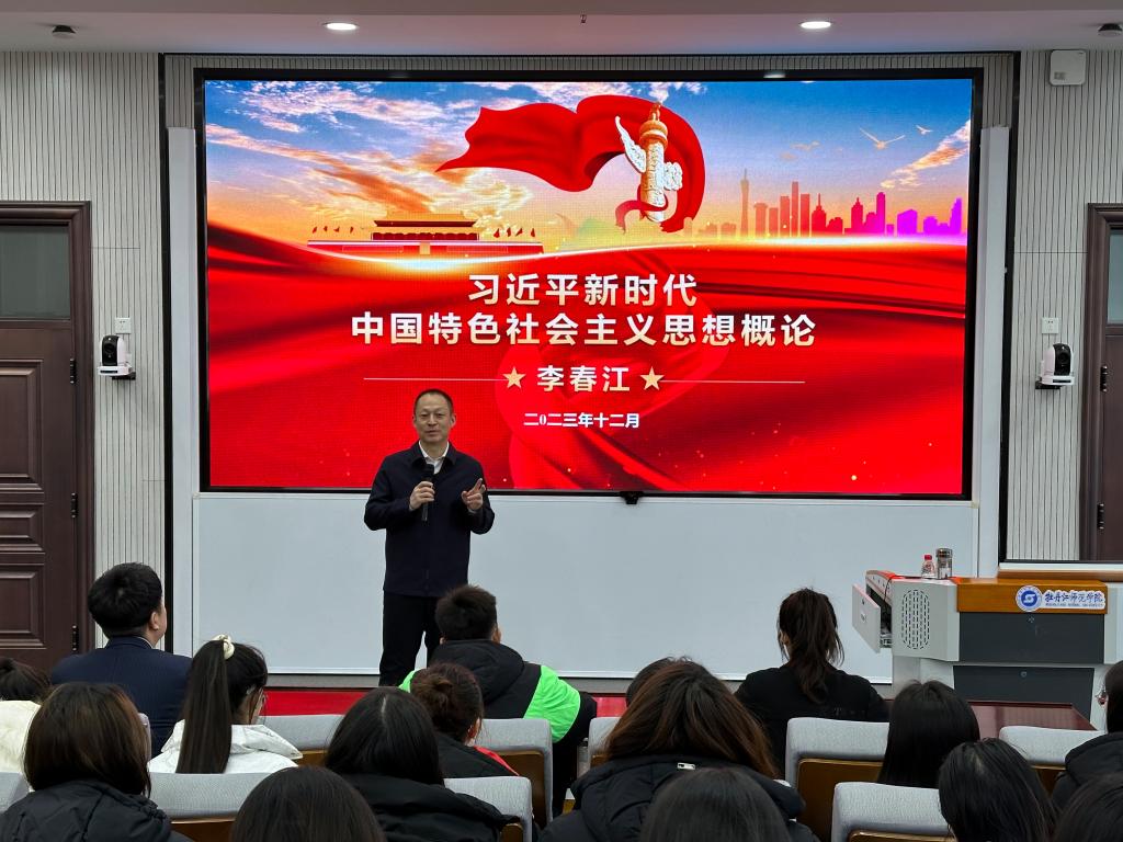 12月21日下午,院长、党委副书记李春江在综合楼201室为西方语言学院、教育科学学院部分学生讲授思政课。