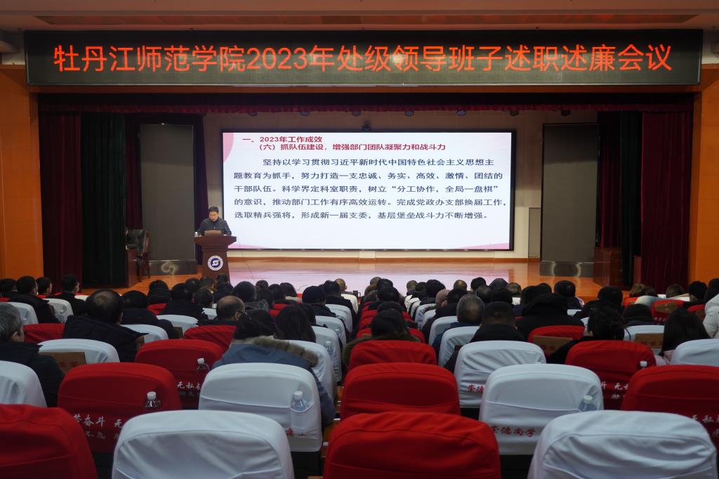 根据《2023年度学校基层单位政治生态建设成效考核工作方案》《2023年度处级领导班子和处科级干部年度考核工作方案》,18个教学单位和25个非教学单位负责同志全员上台汇报,围绕2023年工作成效、工作中存在的主要问题、2024年工作思路和努力方向等方面,依次进行述职述廉。各单位述履职、晒业绩、查不足、明目标、传压力、激动力,充分展现了学习贯彻习近平新时代中国特色社会主义思想主题教育和能力作风建设“工作落实年”突出成效,凝聚了“踏踏实实、扎扎实实、求真务实”干事创业的新动力。