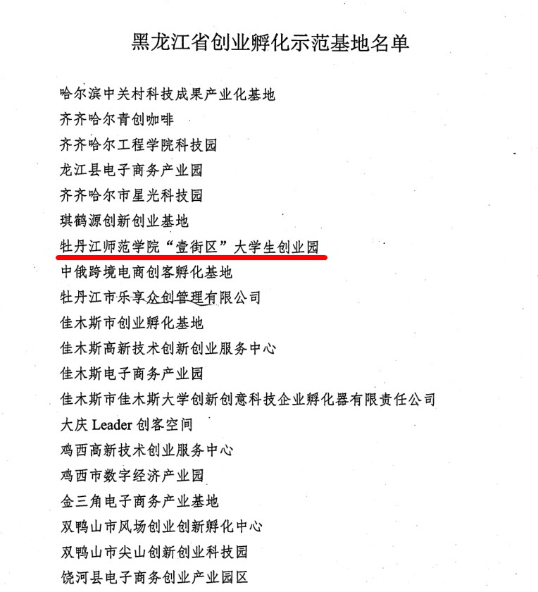近日,黑龙江省人力资源和社会保障厅为2023年黑龙江省创业孵化示范基地授牌。我校“壹街区”大学生创业园被认定为“黑龙江省创业孵化示范基地”。