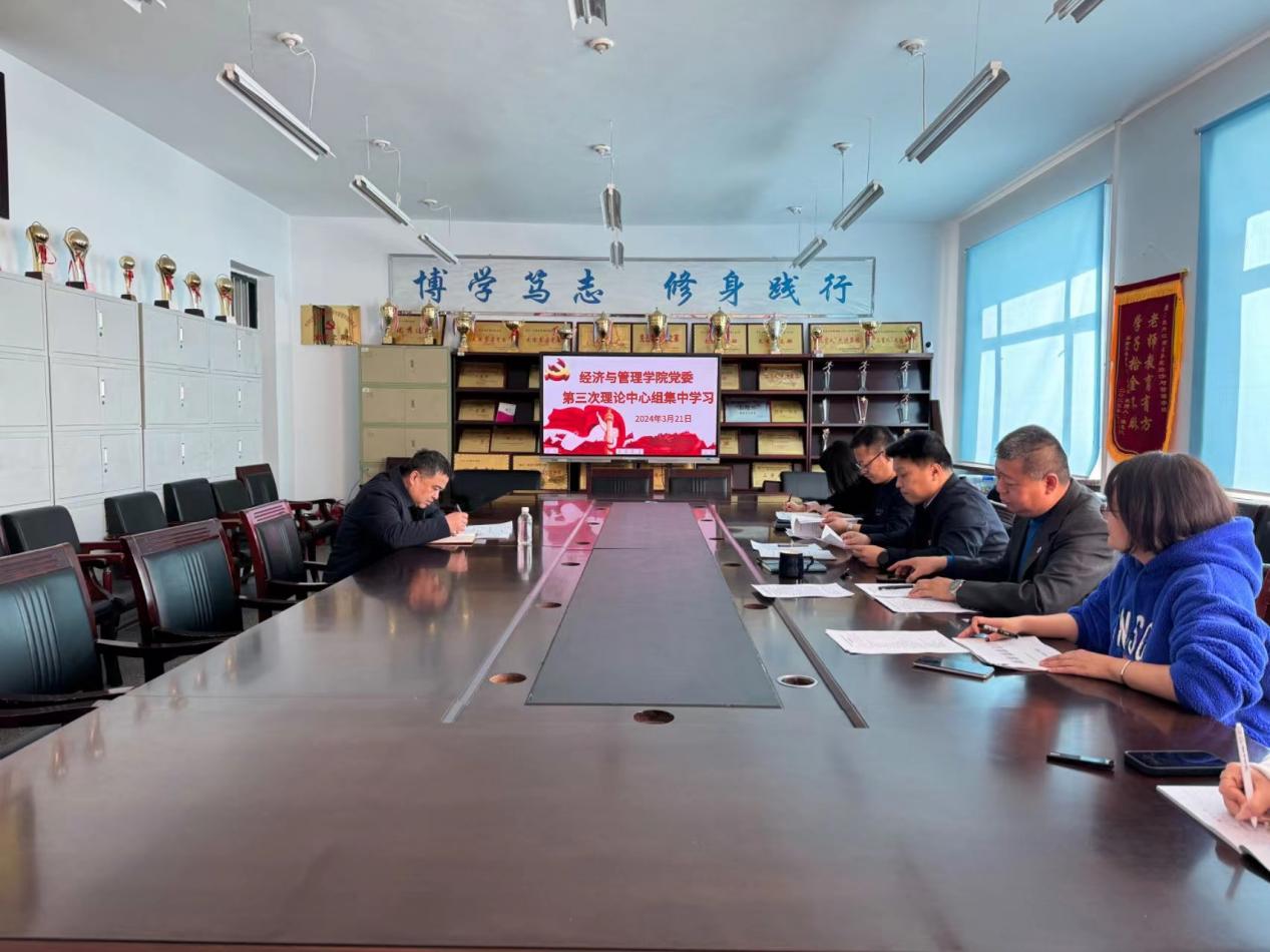 为加强政治引领,提升党员干部思想政治素养,3月21日上午9时,经济与管理学院召开第三次党委理论学习中心组学习会议。校党委副书记刘松到会指导,经济与管理学院党政班子全体成员参加会议。会议由经济与管理学院党委书记朱柏学主持。