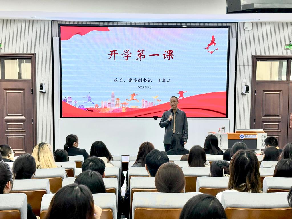 3月23日上午,院长、党委副书记李春江在综合楼201室为青年学子讲授开学第一课。