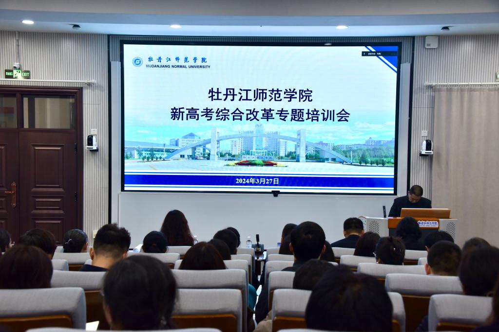 为准确把握新高考综合改革方向和脉搏,充分认识新形势下招生宣传工作的重要性,精准研判学校招生面临的新形势、新要求,探索与学校发展目标定位相匹配的人才培养模式,3月27日下午,学校邀请中国教育在线副总编辑、新高考研究中心主任,中国教育发展战略学会教育评价专业委员会副秘书长江爱萍作题为《高考改革背景下专业建设对招生工作和生源质量的影响》专题培训。副院长张冰,副院长、党委常委张晓祥,各二级学院党委书记、院长、专业负责人及教务处、招生就业处全体干部参加培训。会议由招生就业处处长孙蕾主持。