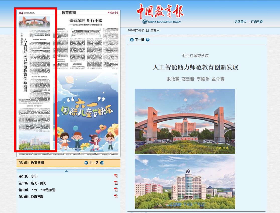6月1日,《中国教育报》在第04版以《久青草无码视频在线观看第一苞-日韩 高清 无码 人妻-局长揉着秘书的双乳H文电影-免费观看已满十八岁电视剧两女-成熟人妻AV无码专区A片麻豆人工智能助力师范教育创新发展》为题,对我校积极推进教育教学与人工智能技术深度融合,率先集成实现卓越师范教育智课上线、中俄双语慕课出海、“智助问效”应用的典型做法进行了专题报道。