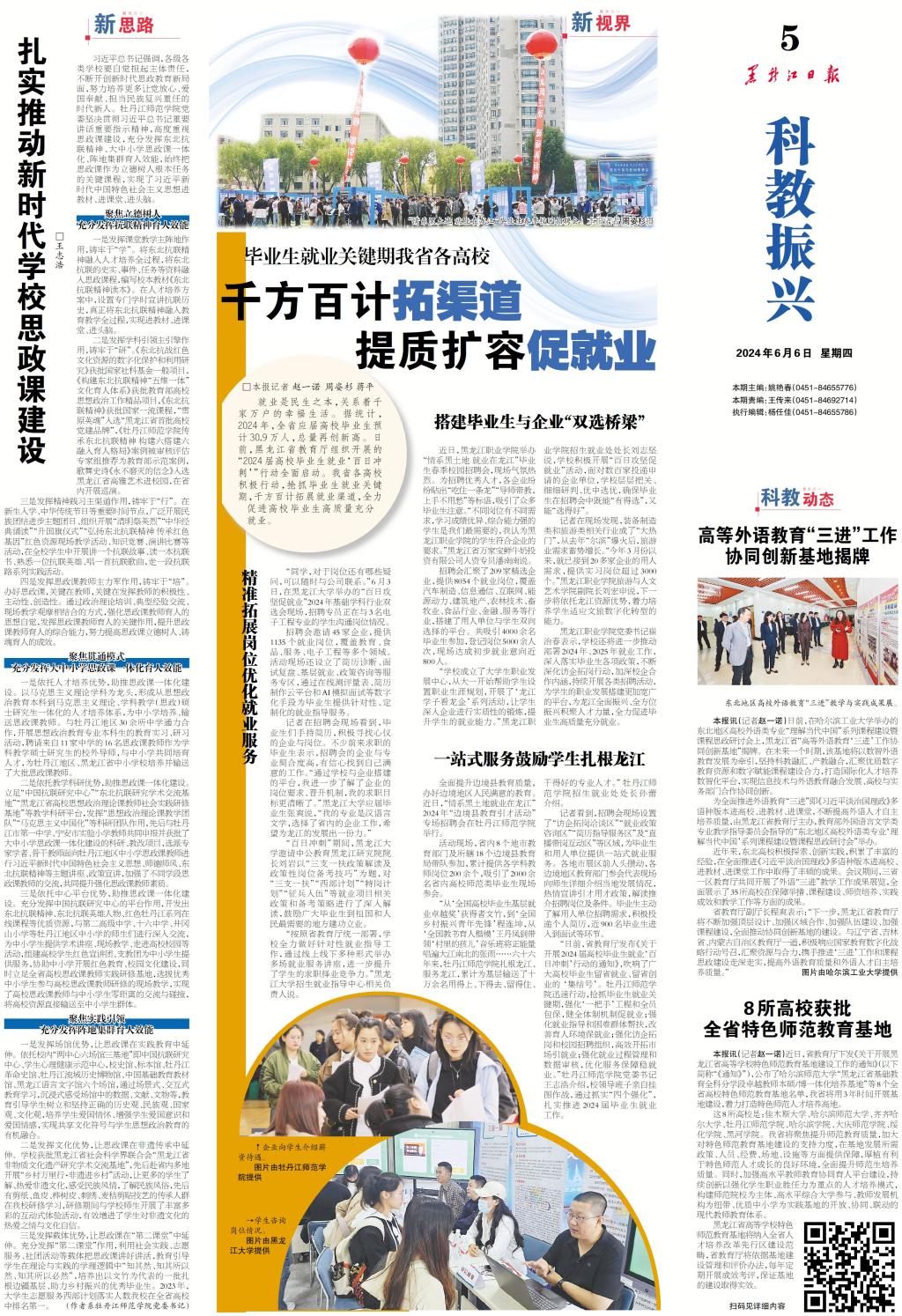6月6日,《黑龙江日报》科教振兴专刊刊发了我校党委书记王志浩署名文章《扎实推动新时代学校思政课建设》。