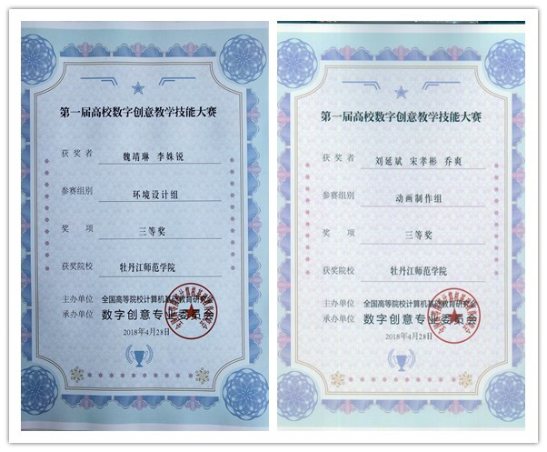 近日获悉,美术与设计学院教师宋孝彬、刘延斌、乔爽、魏靖琳、李姝锐老师在第一届高校数字创意教学技能大赛中,分别获得动画制作组和环境艺术设计组三等奖的好成绩。