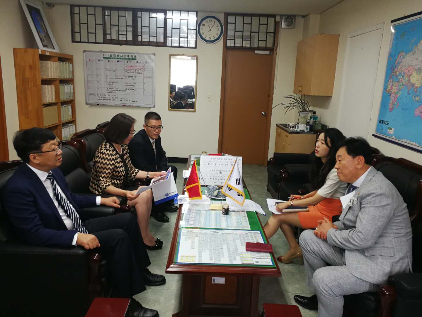 6月28日上午,我校代表团正式访问清州大学,李旭中副校长与清州大学校董事金润培进行了亲切而友好的交谈。对于两校将近20年的合作历史进行了回顾,并展望未来,对两校在更多领域的合作进行了深入探讨。下午,代表团与清州大学外事处处长就中外联合办学、本科“2+2”项目及“4+0”项目方案进行了更为实质性地探讨,尤其对于两校生命科学学院深入合作事宜交换了意见。