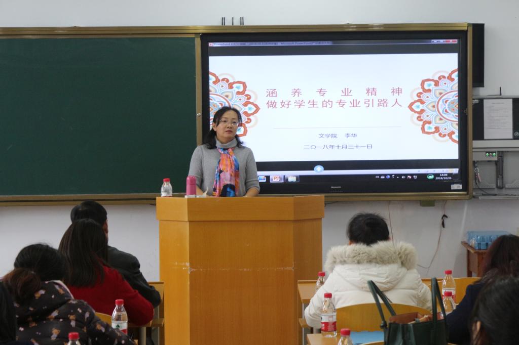 10月31日下午,教务处(教师发展中心)举办了第二期名师讲坛,邀请省级教学名师、校级教学督导专家、文学院李华教授做了题为《涵养专业精神,做好学生的专业引路人》的专题讲座。教务处处长周传胜,二级学院青年骨干教师与新入职青年教师共60余人参加了本期名师讲坛。