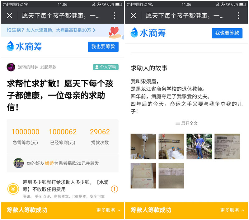 面对这想都不敢想的天文数字,这位母亲陷入炼狱般的巨大痛苦之中。她不得已放下荣退教师的"尊严",于2018年3月10日晚6时许,通过"水滴筹"这个社会公益救助平台向社会各界发出求助的呼唤。