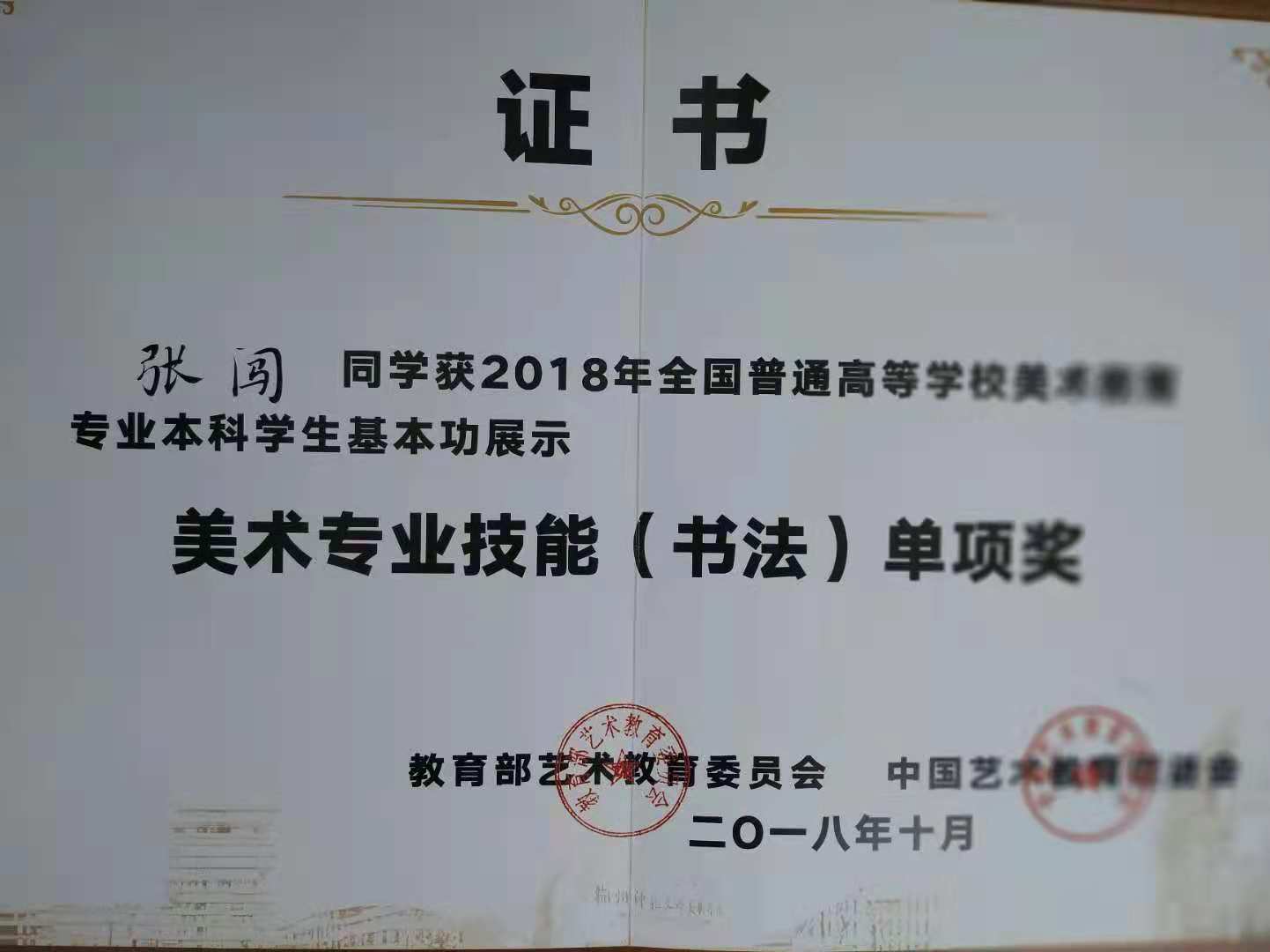 近日,据美术与设计学院获悉,在10月29日举办的2018年首届全国普通高等学校美术教育专业本科学生基本功展示活动中,在我校全香春、张应力、孙丽华等教师的带领下,我校2015级美术学专业郑宇桐荣获个人全能三等奖,张闯荣获书法和手工两个项目的单项奖。