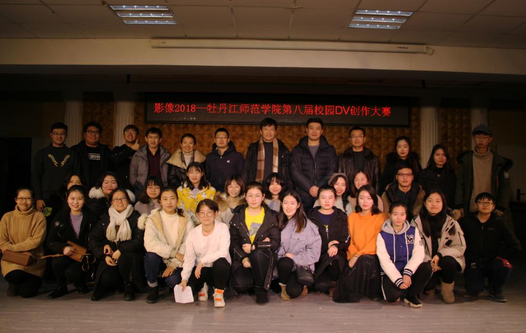 12月13日,影像2018——第八届校园DV创作大赛决赛暨颁奖典礼在第二音乐厅圆满落幕。牡丹江新闻传媒集团监事会主席、高级记者勾德强,文学院广播电视学专业教授宋明华、潘宇莹,美术与设计学院动画专业副教授梁世磊担任评委。教务处、学生处、文学院部分领导及师生200余人共同观看了比赛。