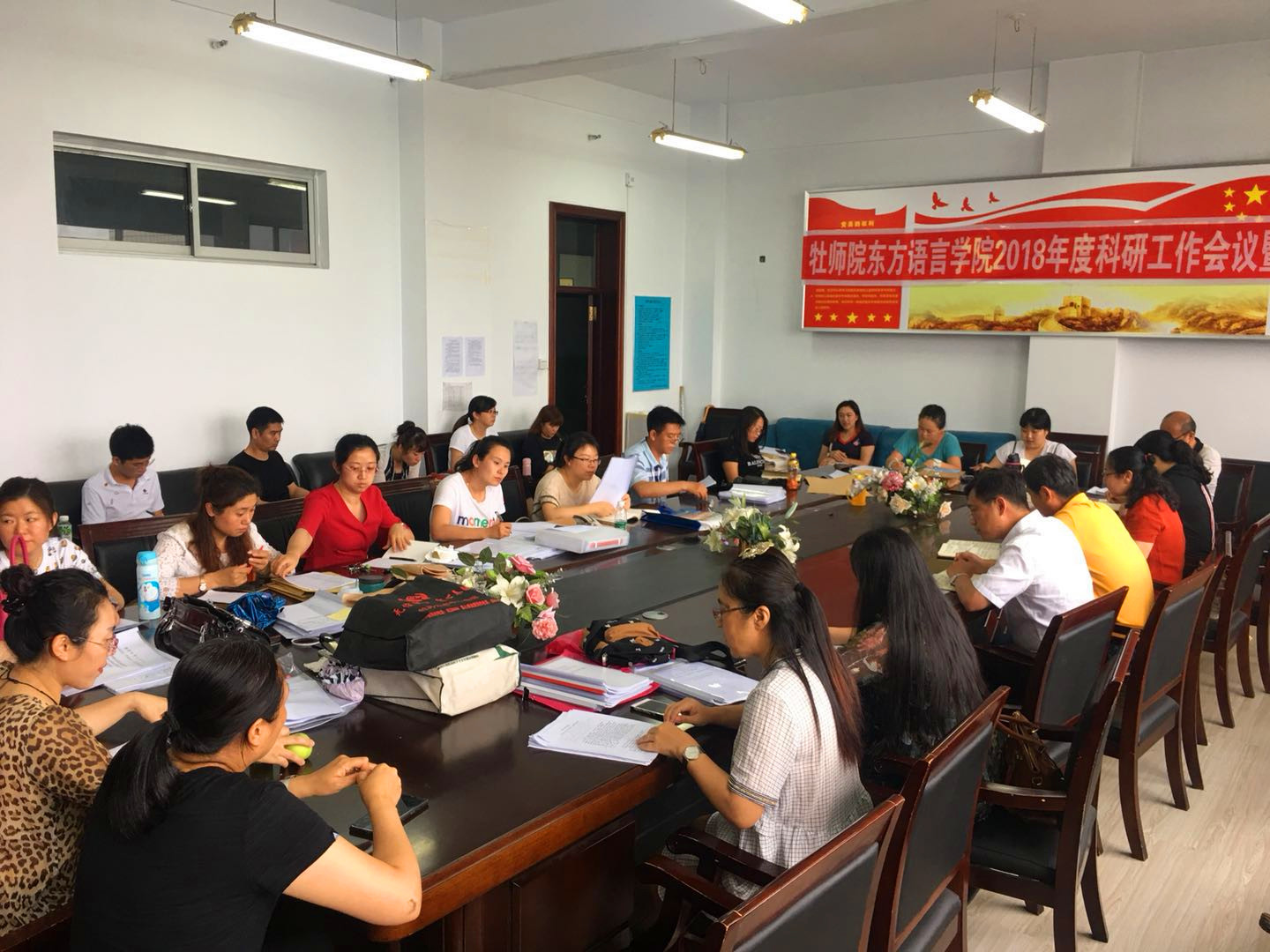 7月4日,东方语言学院在综合楼1008室召开2018年度科研工作会议暨学术研讨会,东方语言学院班子成员及全体教师参加了会议,会议由副院长房国铮主持。