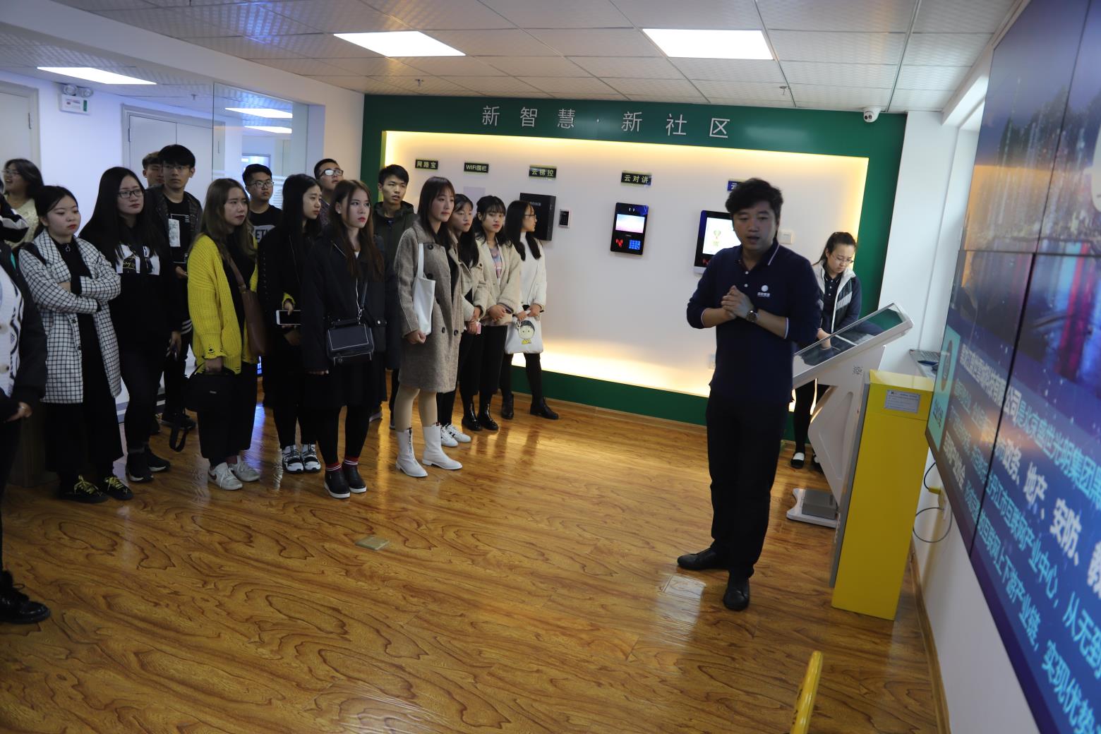当日,在牡丹江市传城房屋服务有限公司工作人员的带领下,同学们参观了360房屋超市线下平台展厅等经营场所,了解该公司的主营业务及未来发展方向,现场观看了线上平台网站建设,了解公积金、房产、家装、建材、平台服务等一站式服务项目。同学们踊跃提问,工作人员答疑解惑,现场气氛十分热烈。参观黑龙江盛世雪城科技有限公司时,学生们无不感叹智慧社区的神奇与新型科技的力量。同学们纷纷表示此次参观活动受益匪浅,今后将继续加强专业学习,不断强化自己、不断进步。