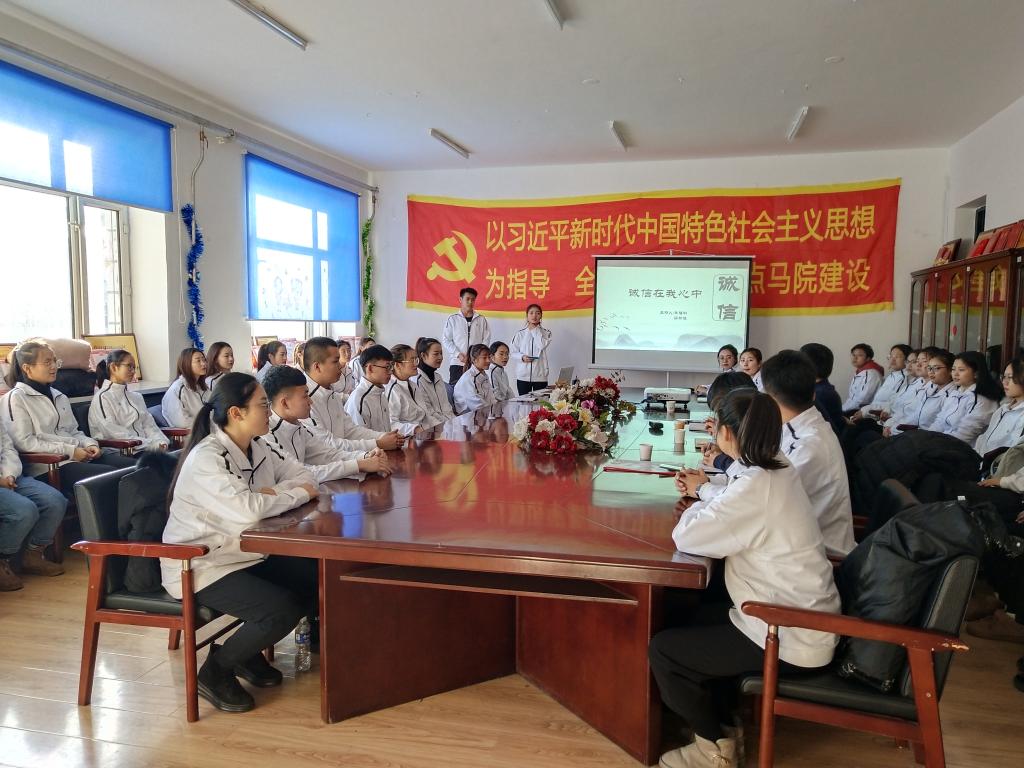 12 月19日,马克思主义学院2018级学生在文科楼522室开展了“诚信在我心中”主题班会。校党委书记王育伟,马克思主义学院党委书记于辉、辅导员李瑶参加了主题班会。会议由班长朱福洲、梁斯佳主持。