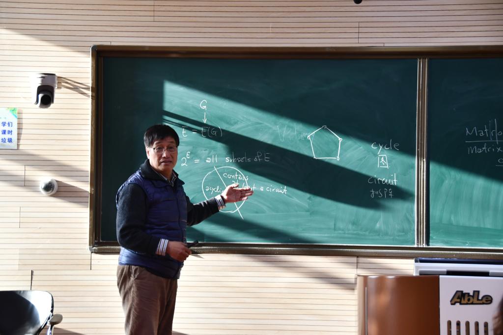 赖虹建教授为数学科学学院教师及硕士研究生作了关于拟阵基础及圈图理论的系列报告,同时还从微积分教学方面与部分教师作了交流。通过赖虹建教授的指导交流,开阔了广大师生的学术视野,师生对拟阵及图论的研究前沿有了一定的了解和认识,同时也了解到中美两国微积分教学的异同和教学的实际状态。