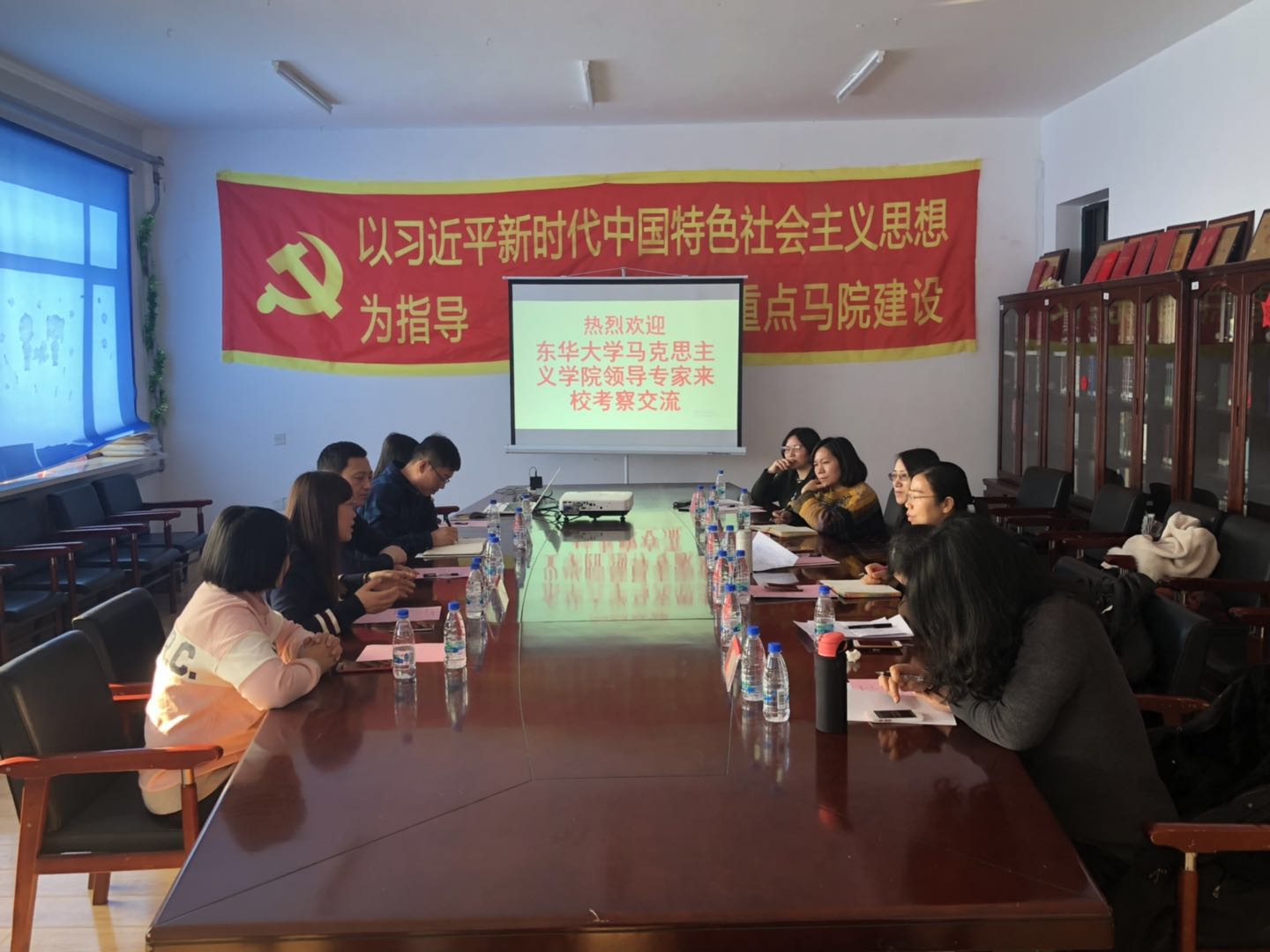 1月19日,东华大学马克思主义学院院长王治东教授一行6人来我校考察交流。我校马克思主义学院党委书记于辉、副院长周柏春、张云霞,马克思主义基本原理教研室主任李岚、近现代史纲要教研室主任王雅馨参加了交流会。