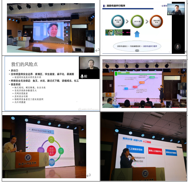 按照会议日程,教学主题会议邀请国家教学成果二等奖获得者、东北大学高克宁教授做了题为《线上线下混合式一流课程建设核心问题探索》的主题报告,高教授以多年线上线下混合式一流课程建设工作亲身经历和体验,就政策解读和一流课程申报分享了经验和方法。张岩院长做了题为《用好课堂主渠道,课程思政大家行》的主题报告,张院长解读了课程思政有关文件精神,通过案例介绍了课程思政建设方式和方法。教育技术系刘凤艳、徐志丹两位老师以《信息技术课程的新机遇、新挑战》为题,分享了近期参加“新理念·新课标·新实践”中国教育学会中小学信息技术教育专业委员会2020年年会暨第12届中小学信息技术教育研讨会的心得体会、传达了会议精神。