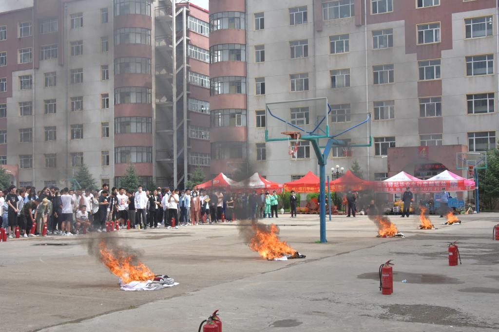 活动围绕2021年全国防灾减灾日“防范化解灾害风险,筑牢安全发展基础”主题,因地制宜,提前设置突发险情场景、科学规划疏散演练流程。下午13时30分,六号公寓楼浓烟四起、气味呛鼻,并迅速向楼上、院内蔓延,随着警报声响起,公寓工作人员迅速启动消防应急疏散预案,参演学生在引导人员的引导下快速有序地按照规定路线低姿撤离。演练结束后,学校武装保卫处防火科负责人进行了总结点评,讲解了干粉灭火器的使用方法及注意事项。公寓工作人员和学生实际操作演练,亲身感受灭火过程,进一步掌握了消防知识。