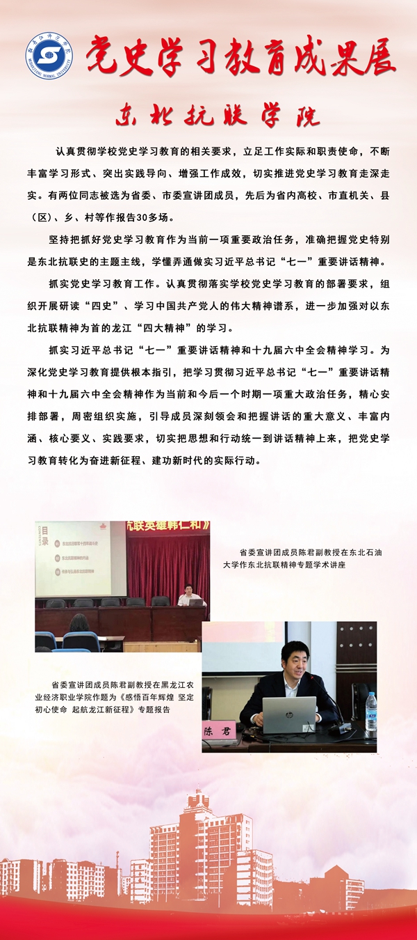 上一条:党史学习教育成果展——离退休工作处 下一条:党史学习教育成果展——经济与管理学院
