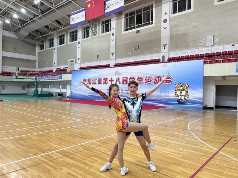 8月15日,黑龙江省第十八届学生运动会在我校体育馆举行。比赛首日,我校运动员顽强拼搏、奋勇争先2021级舞蹈表演专业陈书博喜获竞技健美操男子单人操甲组金牌,2021级舞蹈表演专业刘溪芮喜获竞技健美操女子单人操甲组金牌,充分展示出我校学子的靓丽风采和昂扬进取、奋发向上的良好精神面貌。